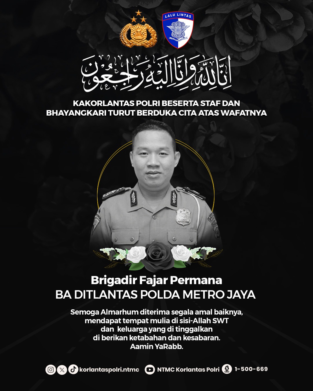 KORLANTAS POLRI, Jakarta – Kapolri Jenderal Listyo Sigit Prabowo menyampaikan belasungkawa usai anggota Direktorat Lalu Lintas (Ditlantas) Polda Metro Jaya, Brigadir Fajar Permana, gugur dalam tugas pengamanan mudik. Kapolri menyebut, …