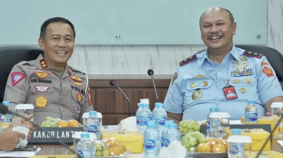 KORLANTAS POLRI, Jakarta. Kakorlantas Polri Irjen Pol Aan Suhanan menerima kunjungan Danpuspom TNI Marsekal Muda Agung Handoko beserta PJU Puspom TNI di Gedung Utama Korlantas Polri, Jakarta (24/01). Dalam kesempatan …
