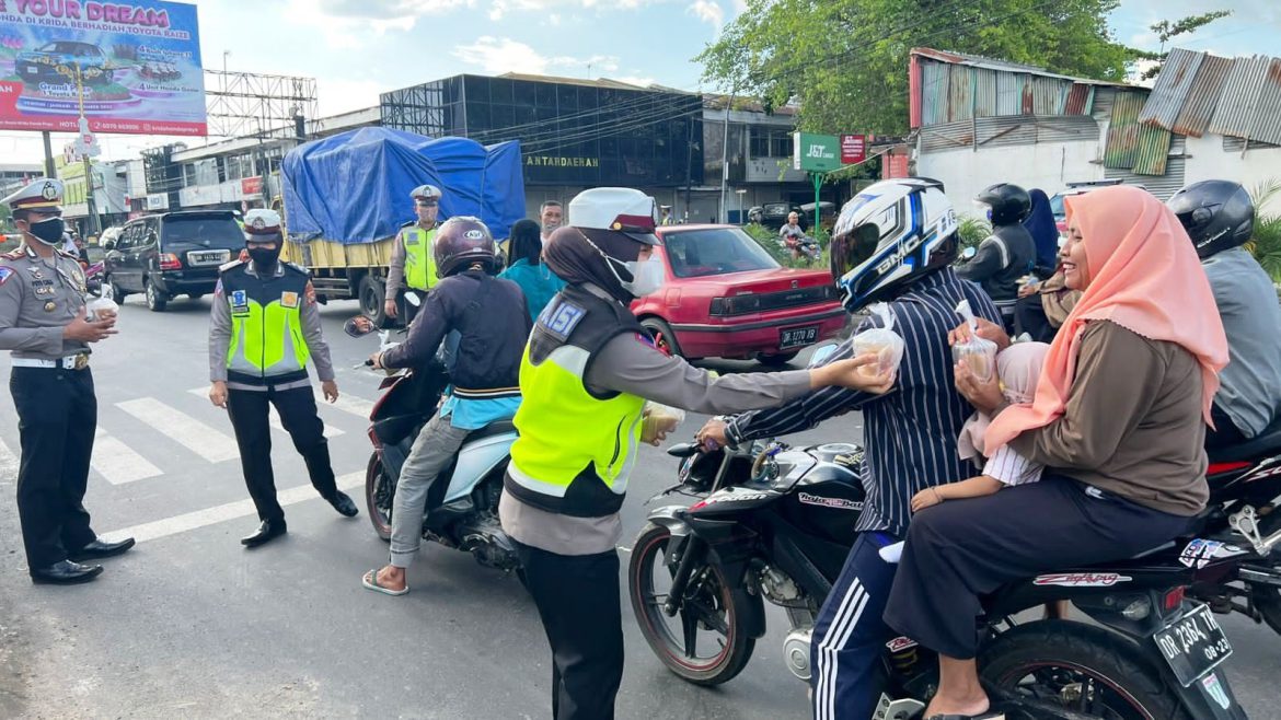 KORLANTASPOLRI – Satlantas Polres Lombok Tengah membagi-bagikan takjil gratis kepada para pengendara. Sekaligus menyisipkan imbauan agar pengendara mematuhi rambu-rambu lalu lintas. “Kemudian mematuhi protokol kesehatan dan vaksinasi,” kata Kasatlantas Polres …