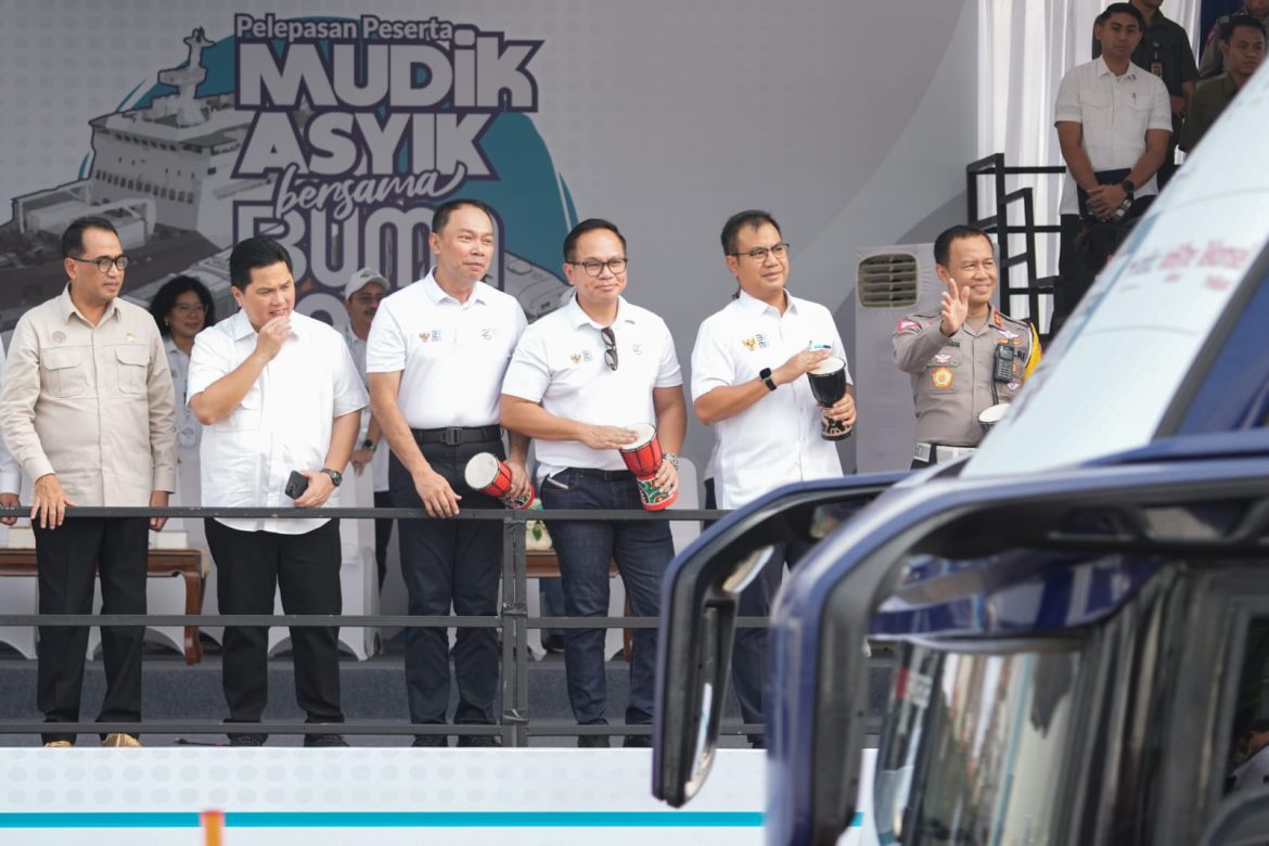 KORLANTAS POLRI, Jakarta. Kakorlantas Polri Irjen Pol Aan Suhanan bersama Menteri Badan Usaha Milik Negara (BUMN) Erick Thohir dan Menteri Perhubungan (Menhub) Budi Karya Sumadi melepas peserta Mudik Asyik BUMN …