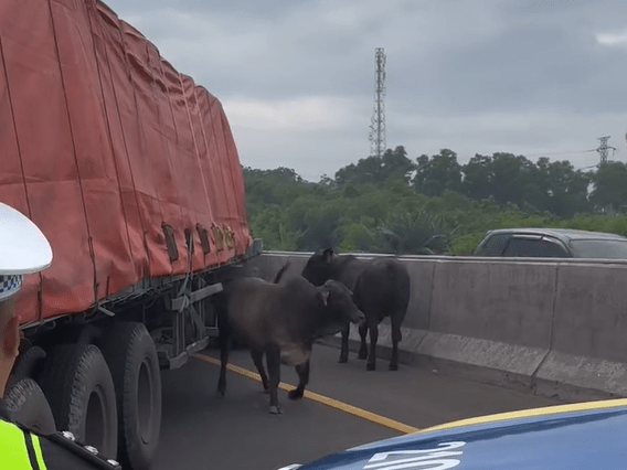 KORLANTAS POLRI, Cikampek – Dua ekor sapi melompat dari truk yang terlibat kecelakaan di Tol Jakarta–Cikampek KM 57, Selasa (18/11/2025). Sapi-sapi tersebut berlarian di jalur tol dan nyaris menabrak kendaraan …