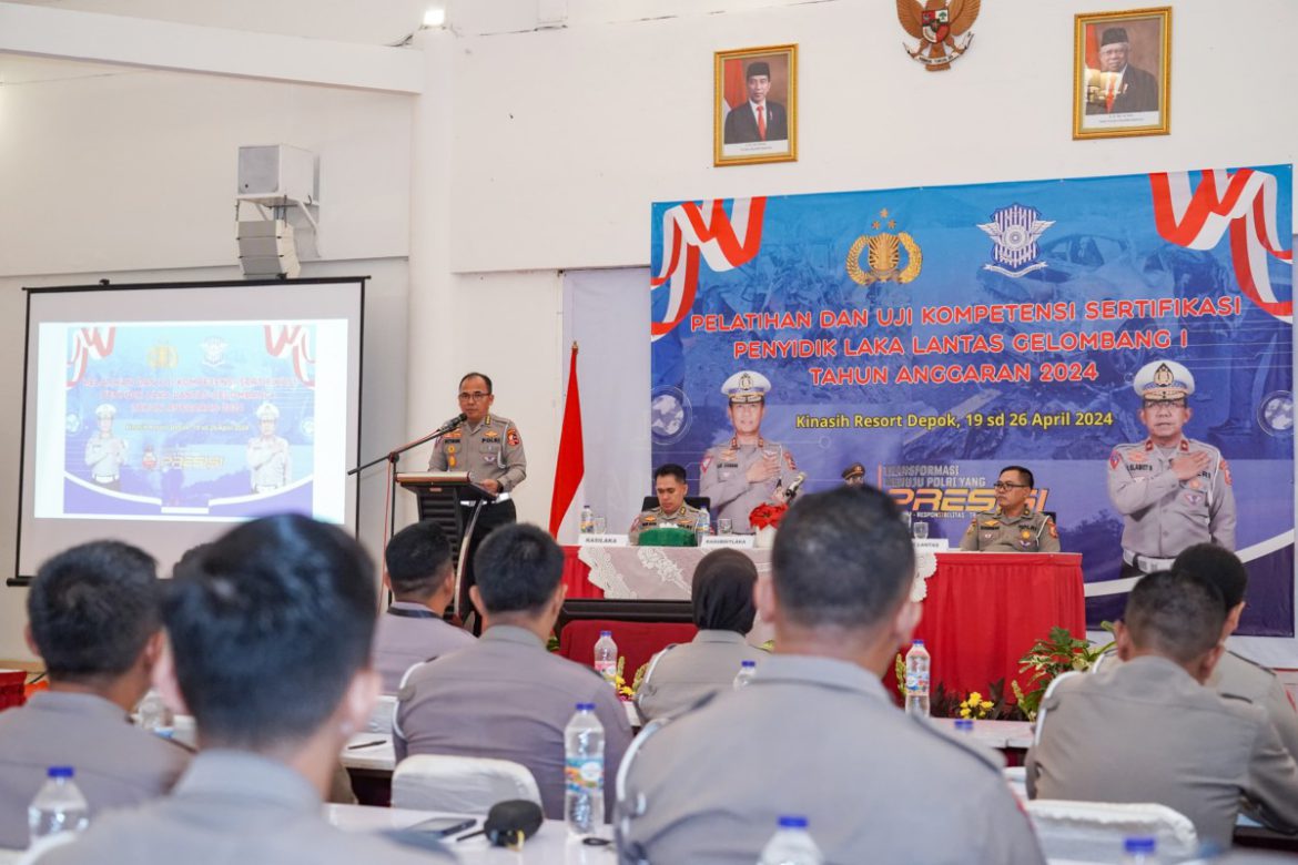 KORLANTAS POLRI, Depok – Meningkatkan pelayanan penanganan kecelakaan lalu lintas, Korlantas Polri melaksanakan Pelatihan dan Uji Kompetensi Sertifikasi Penyidik Laka Lantas Gelombang I T.A 2024, di Kinasih Resort, Depok, Jawa …