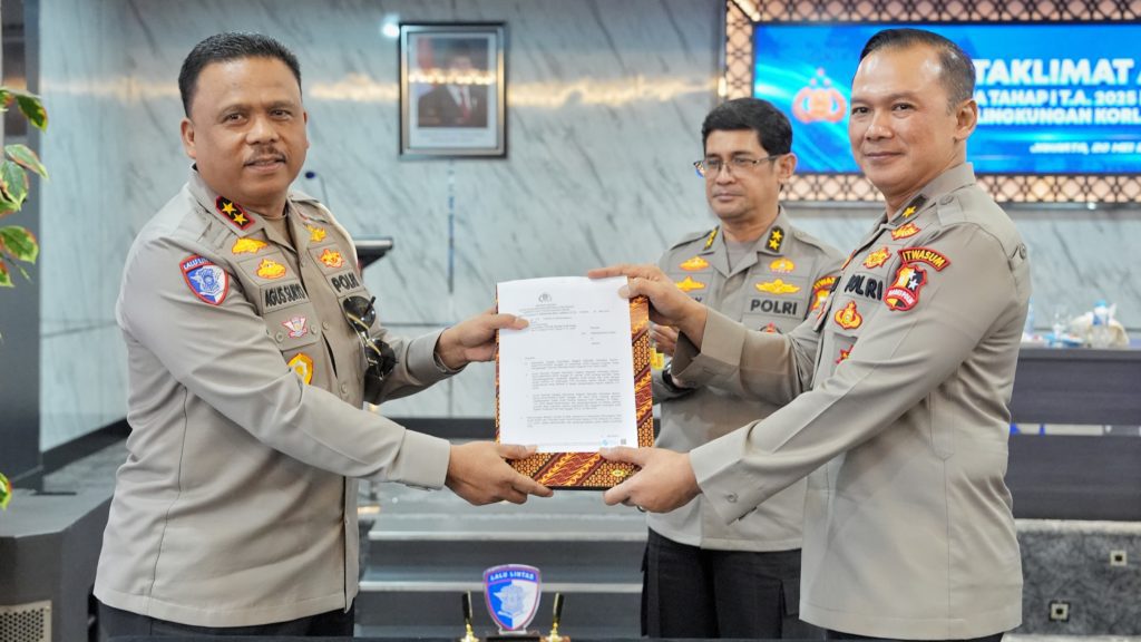 KORLANTAS POLRI, Jakarta – Taklimat atau Arahan Akhir Audit Kinerja Tahap I. T.A. 2025 Itwil III Itwasum Polri Aspek perencanaan dan pengorganisasian di Satuan Kerja Korlantas Polri, Kepala Korps Lalu Lintas (Kakorlantas) Polri Irjen Pol Drs. Agus Suryonugroho, S.H., M.Hum., menegaskan berkaitan dengan transformasi pengawasan dapat menjadi kontrol yang bisa untuk dipedomani.