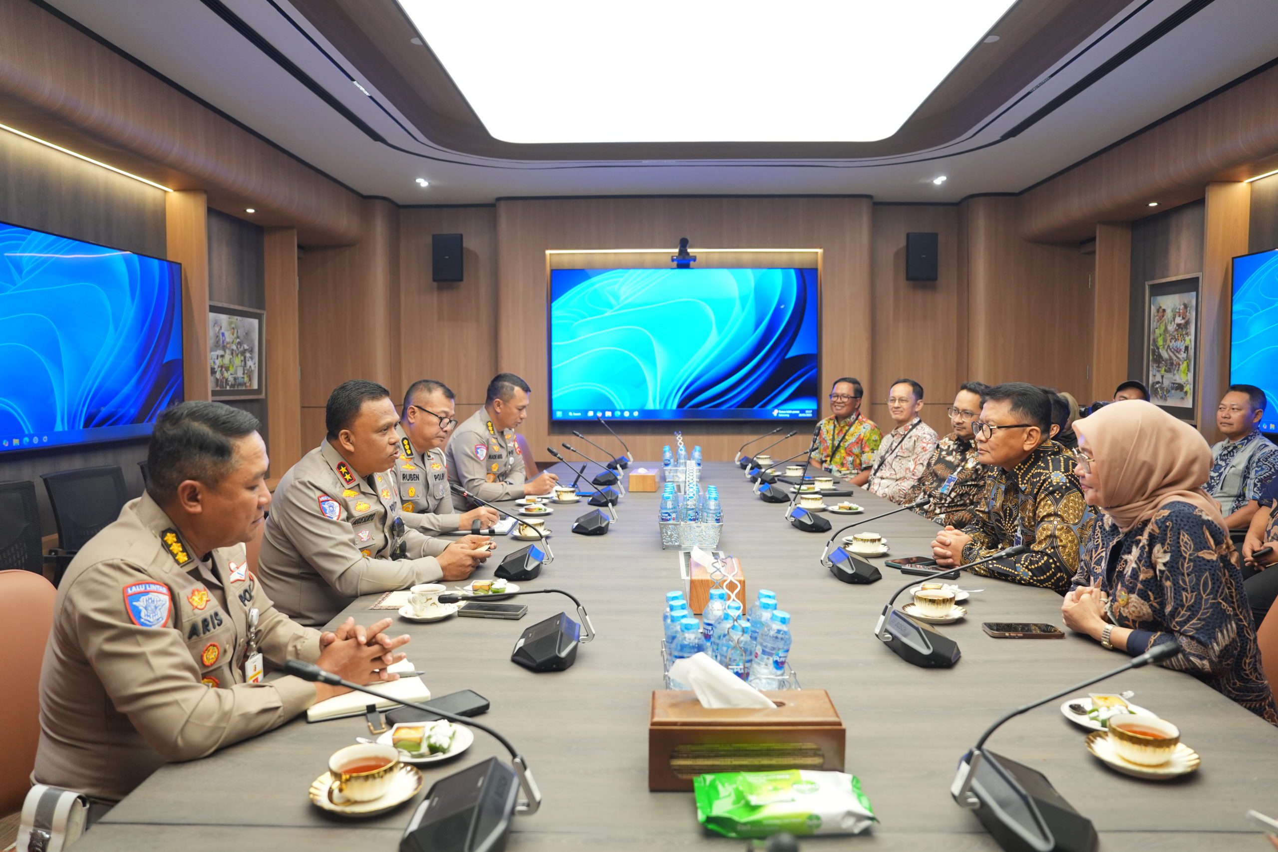 KORLANTAS POLRI, Jakarta – Kepala Korps Lalu Lintas (Kakorlantas) Polri Irjen Pol Drs. Agus Suryonugroho, S.H., M.Hum., menerima kunjungan Plt. Direktur Utama PT. Jasa Raharja Rubi Handojo berserta jajaran, di Ruang Rapat NTMC Polri, Selasa (20/5/2025).