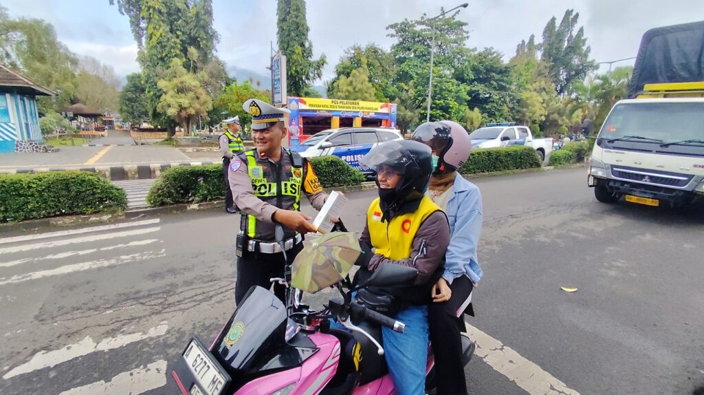 KORLANTAS POLRI, Pandeglang – Apresiasi terhadap pengendara yang tertib dalam berlalu lintas, Satuan Lalu Lintas (Satlantas) Polres Pandeglang memberikan tumbler gratis di Operasi Keselamatan 2026, di Gardu Tanjak, Kabupaten Pandeglang, Sabtu (7/2).