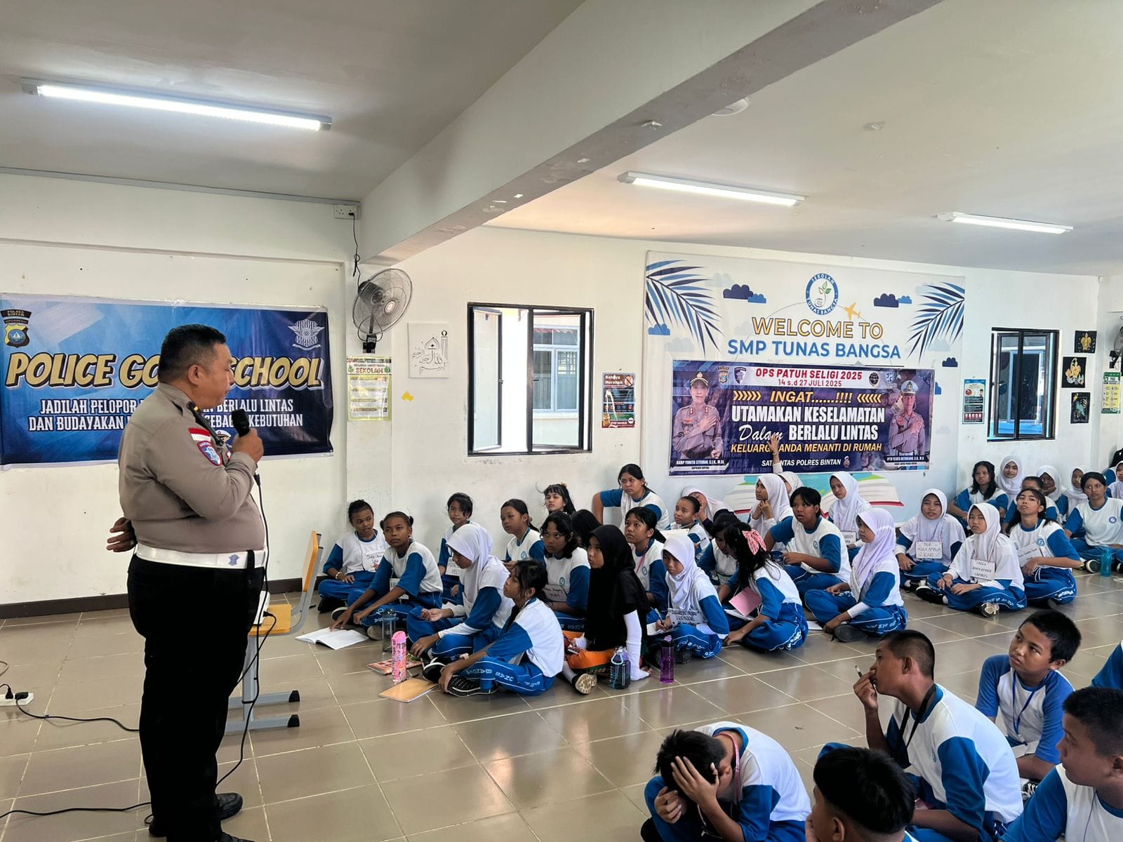 KORLANTAS POLRI, Bintan. – Dalam rangka menekan angka kecelakaan lalu lintas, Satuan Lalu Lintas (Satlantas) Polres Bintan menggelar kegiatan Go To School di SMP Tunas Bangsa Lagoi, Kecamatan Teluk Sebong, Riau Rabu (16/7/2025).